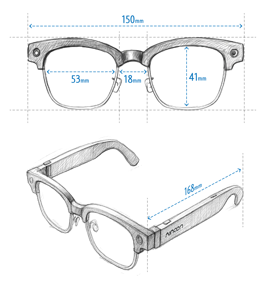 Gläserbreite (53), Stegbreite (18), Bügellänge (156)